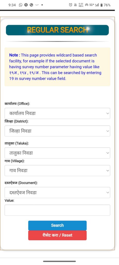 त्या गावची जी काही कागदपत्रे या साईटवर अवेलेबल आहेत ते आपल्याला सर्व मिळणार आहेत जसे की सातबारा आठ इत्यादी प्रकारची कागदपत्रे आपल्याला या इथे मिळणार आहेत.